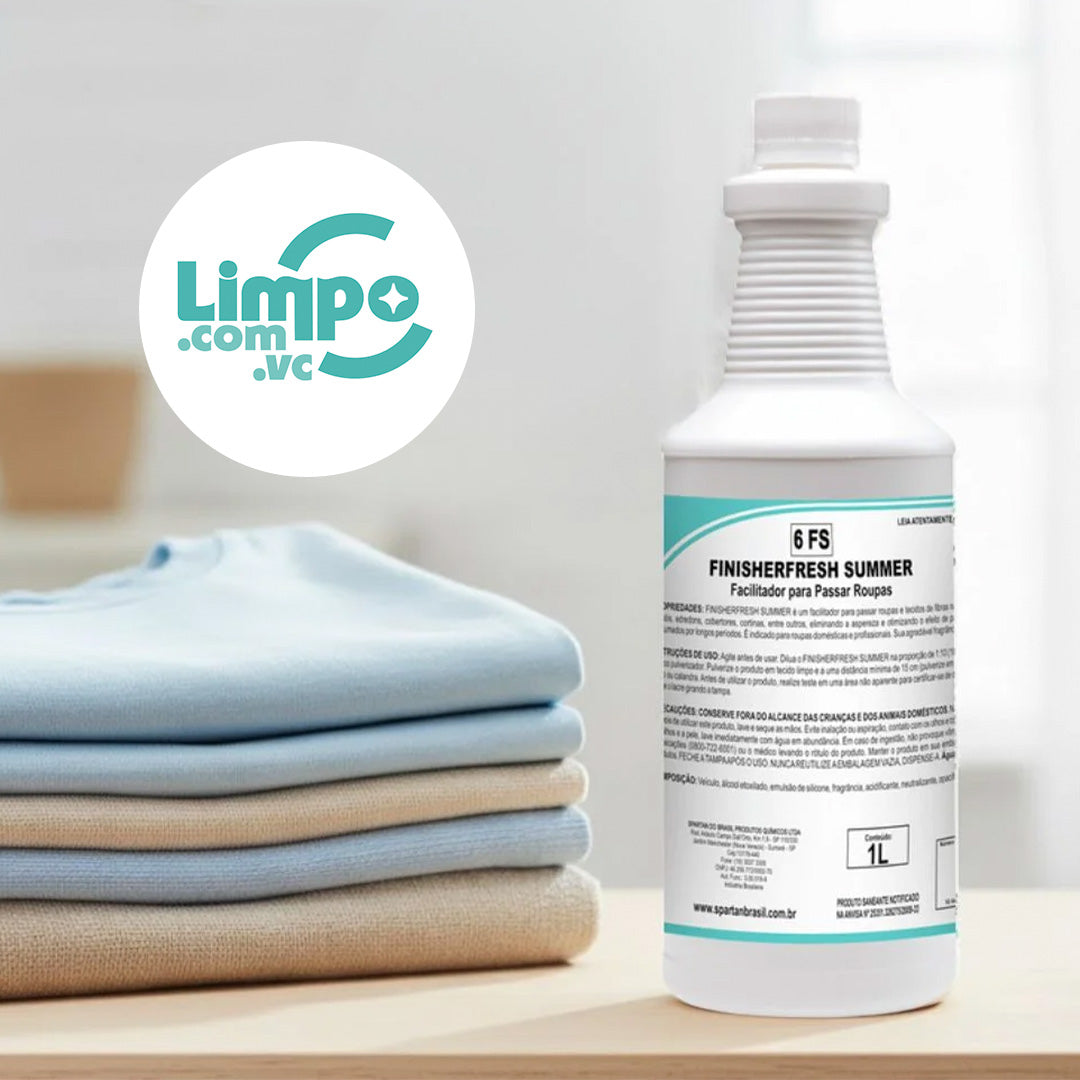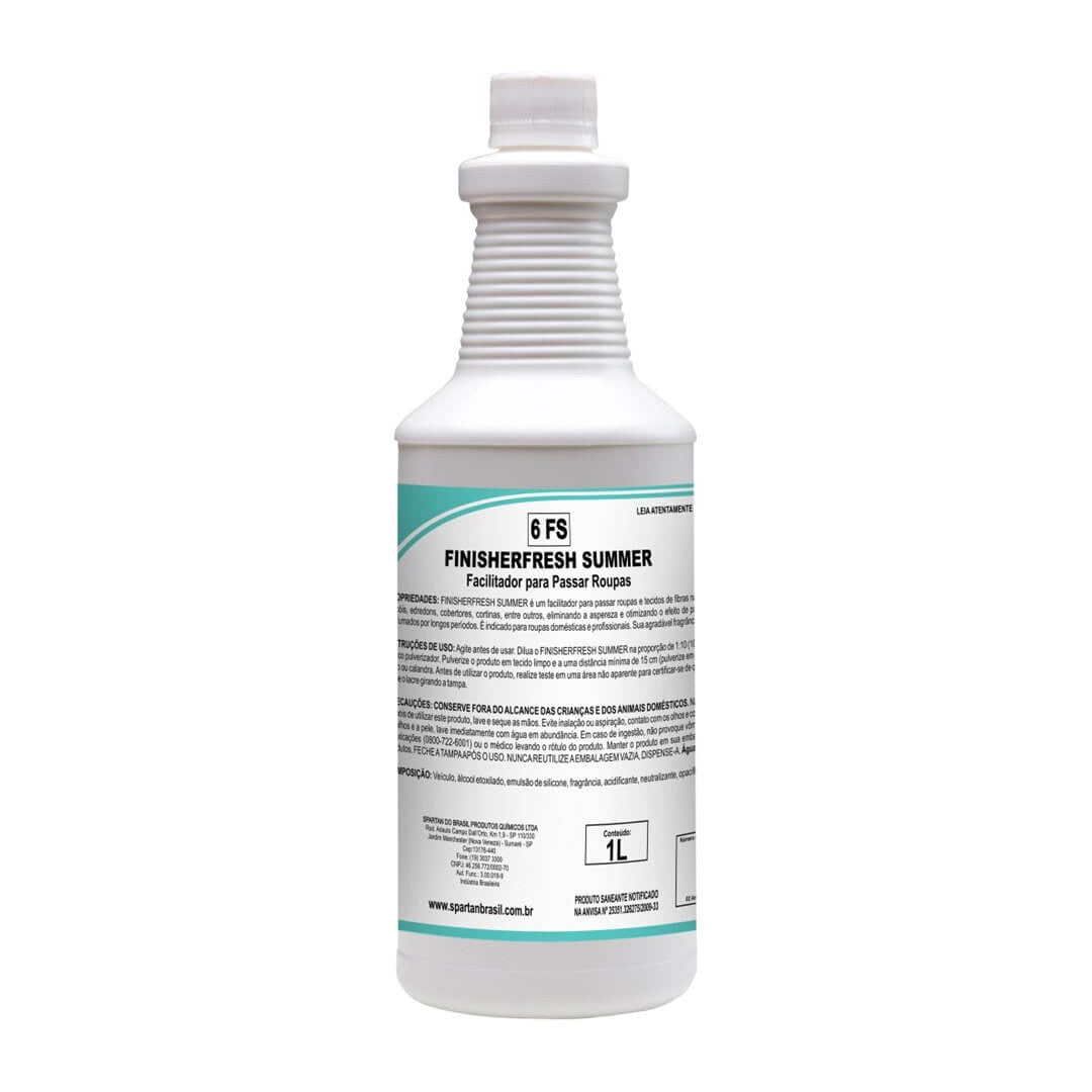 O Finisherfresh Summer Spartan é um facilitador para passar roupas e tecidos, indicado para uso doméstico e profissional. Reduz a aspereza dos tecidos, melhora o deslizamento do ferro e deixa as roupas macias e perfumadas por mais tempo, mesmo em altas temperaturas.